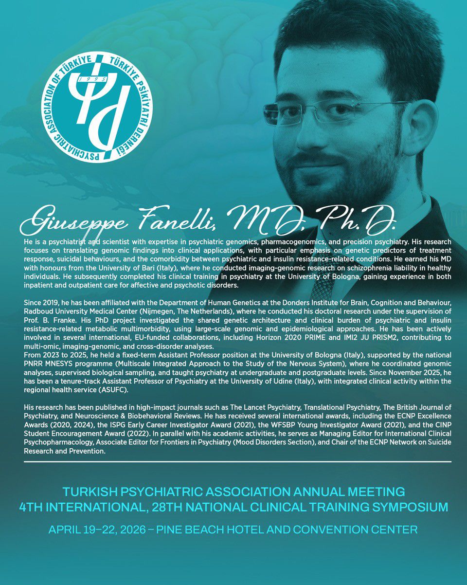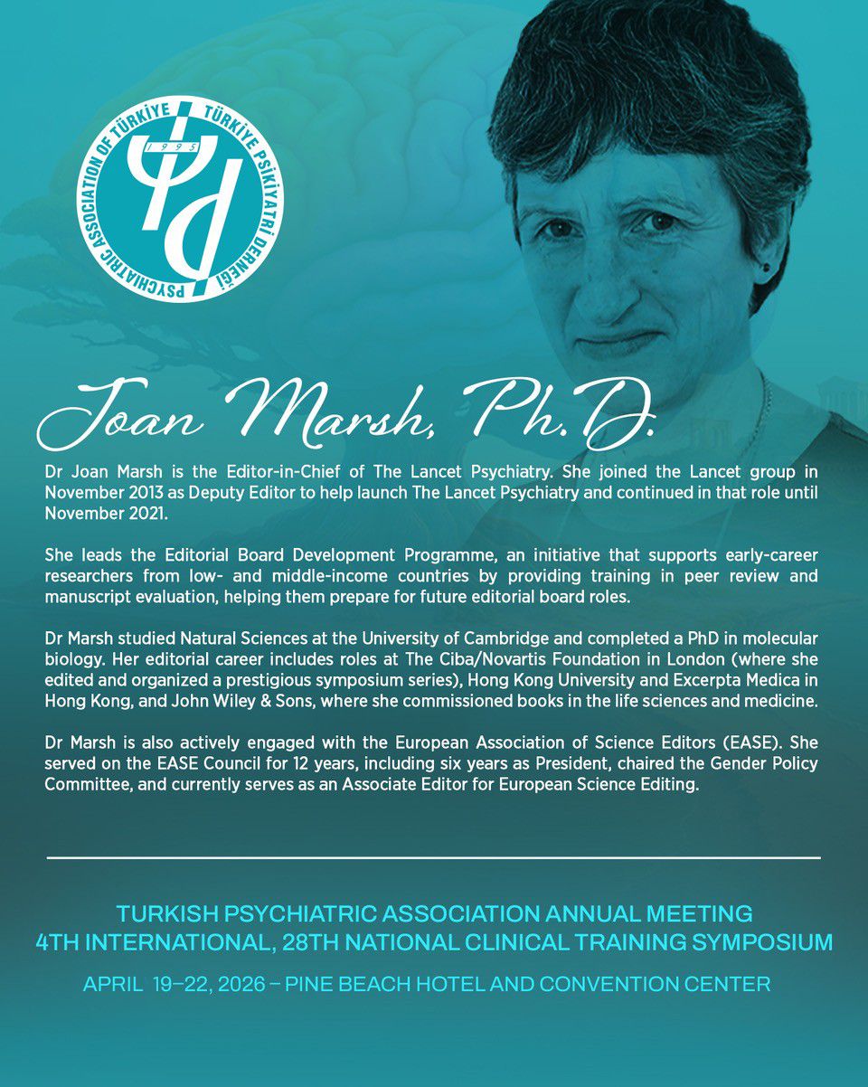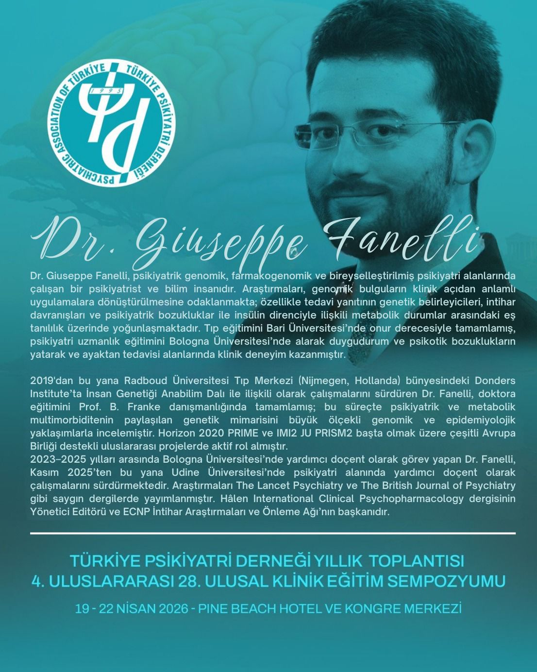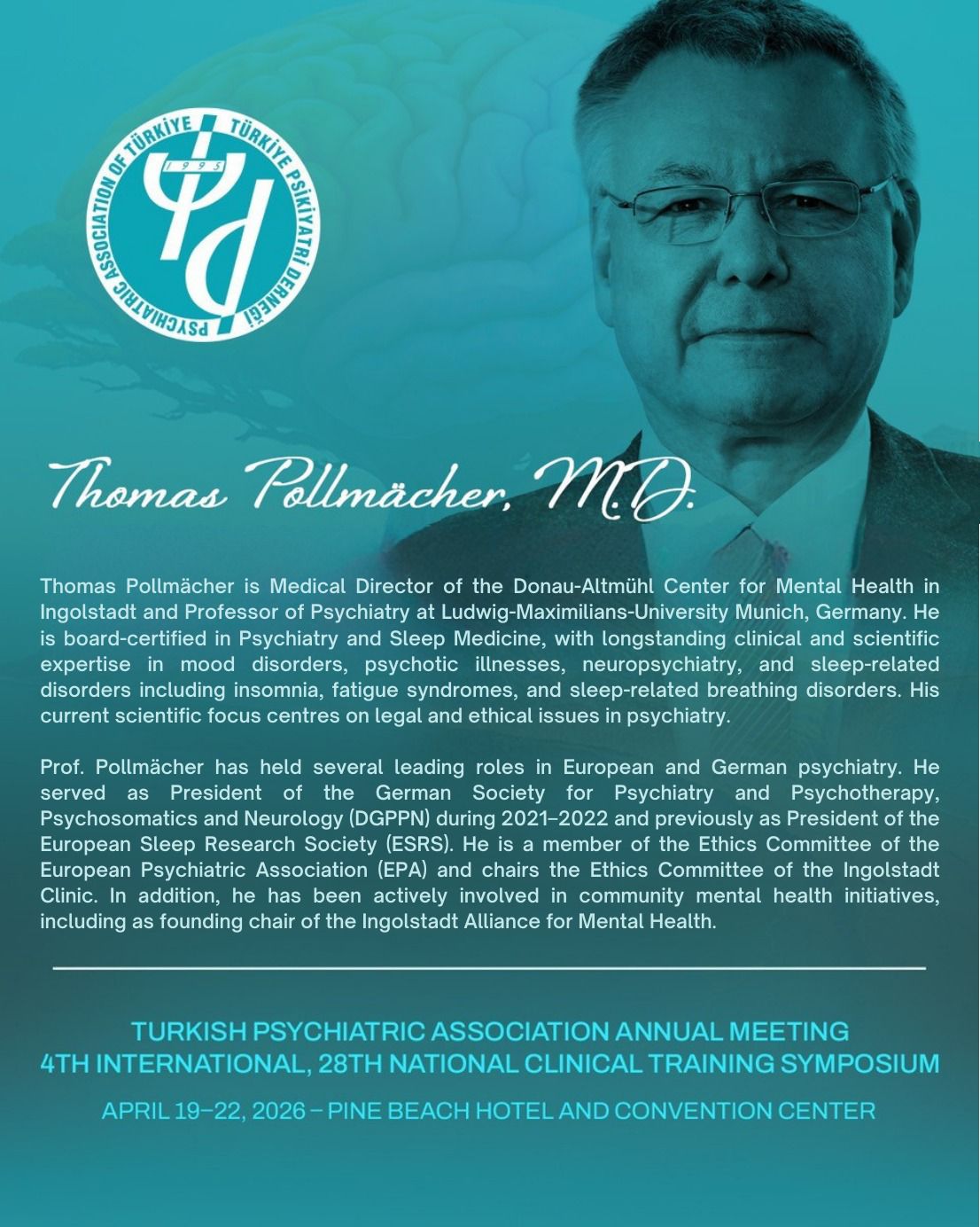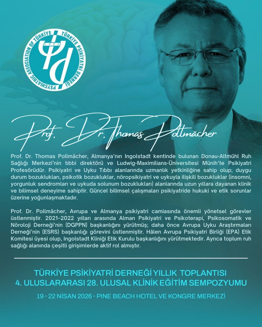 Türkiye Psikiyatri Derneği Yıllık Toplantısı 4. Uluslararası 28. Ulusal Klinik Eğitim Sempozyumu’nu, siz değerli uzman ve uzmanlık öğrencisi meslektaşlarımızın katılımıyla 19–22 Nisan 2026 tarihleri arasında, Antalya Pine Beach Hotel’de gerçekleştireceğiz.